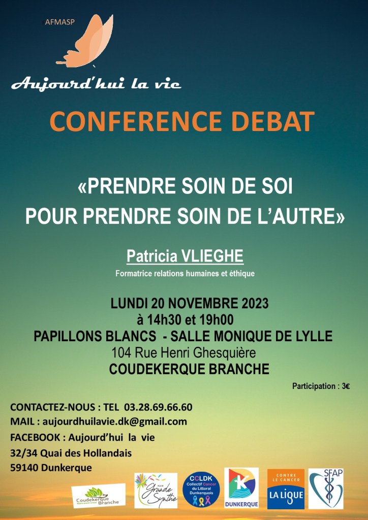 Nous vous donnons rendez-vous lundi 20 novembre 2023 à 14h30 et à 19h00 (2 horaires en fonction de vos disponibilités) pour une conférence-débat animée par Patricia Vlieghe.