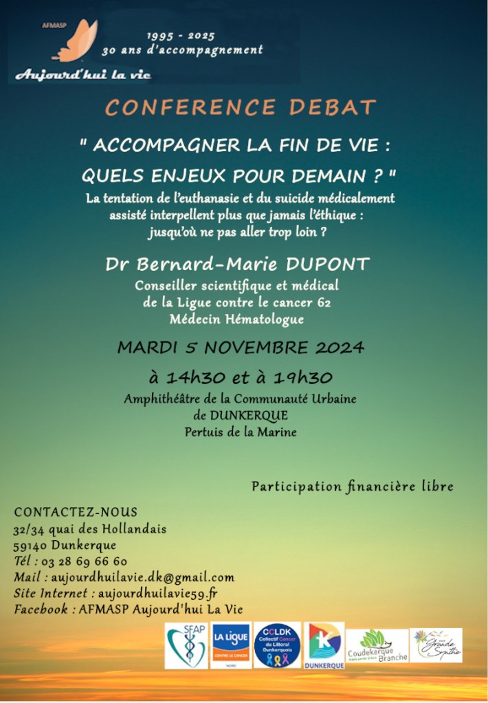 Nous vous donnons rendez-vous MARDI 5 NOVEMBRE 2024 à 14h30 et à 19h30 (2 horaires en fonction de vos disponibilités) pour une conférence-débat animée par le Dr Bernard-Marie DUPONT. Il est Conseiller scientifique et médical de la Ligue contre le cancer 62, et Médecin Hématologue.