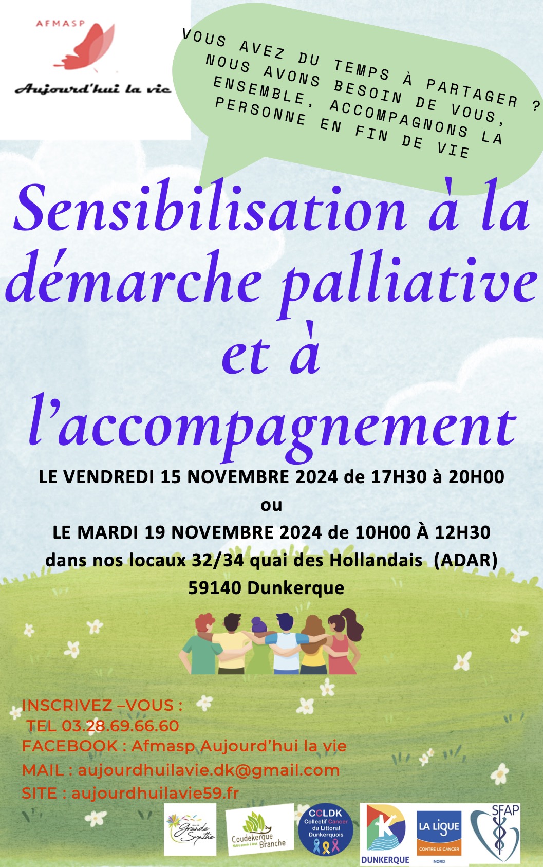 Merci de vous inscrire à la date qui vous convient le mieux (inscription obligatoire) par téléphone au 03 28 69 66 60 ou par Mail : aujourdhuilavie.dk@gmail.com