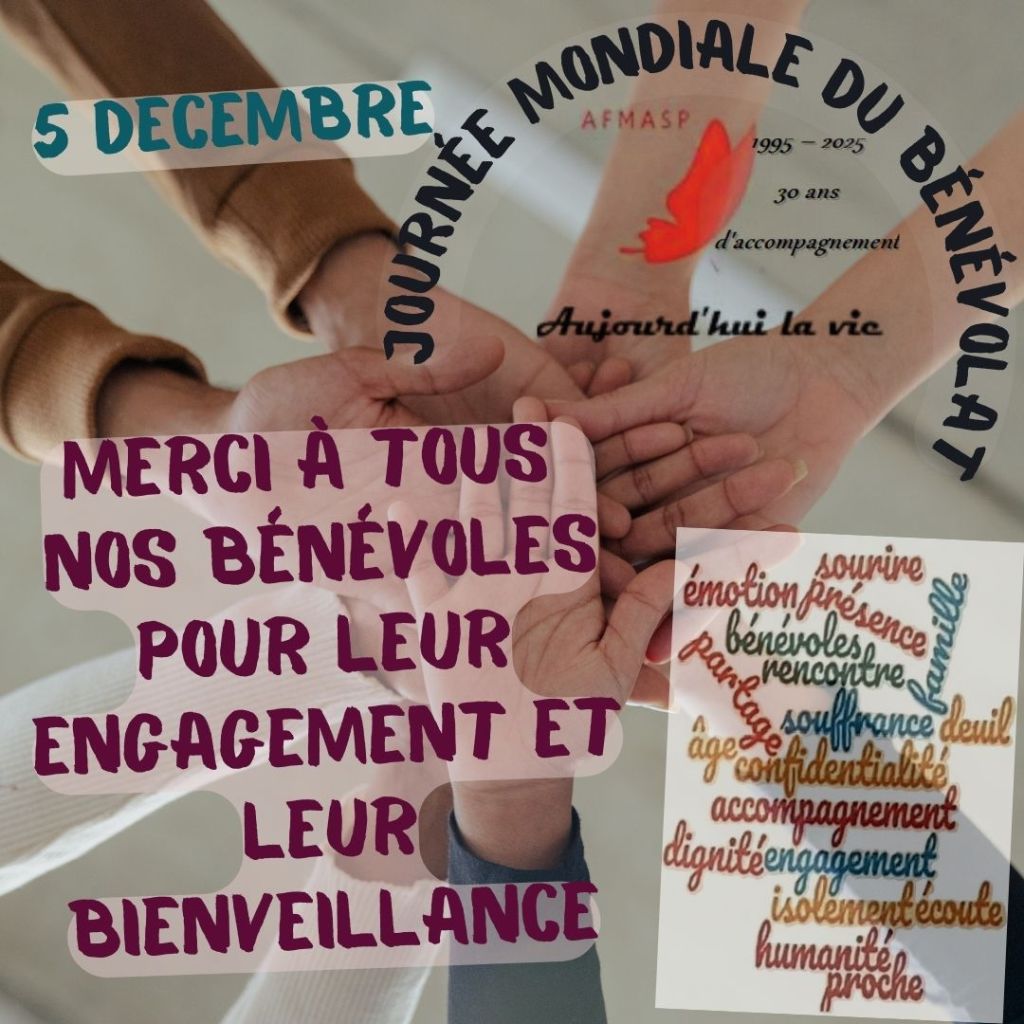 Profitons de ce jour pour remercier toute l’équipe de bénévoles de notre association Aujourd’hui La Vie : les bénévoles accompagnants, ainsi que les bénévoles administratifs (secrétariat, comptabilité, formation, communication)